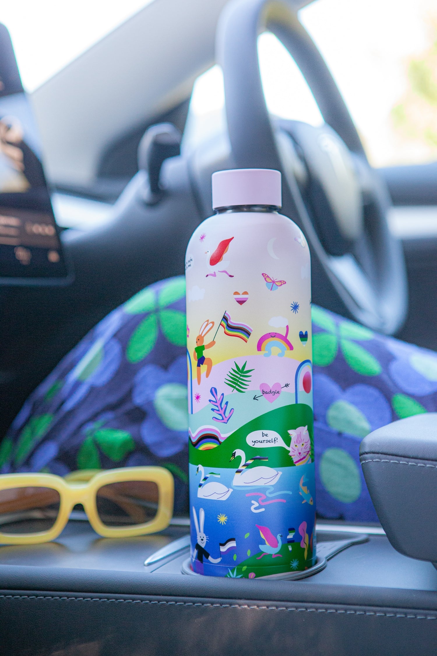 Discover the perfect water bottle to keep you hydrated and showcase your unique style. The Badgie Be Yourself Water Bottle is made from high-quality stainless steel, providing a durable and BPAfree solution to your hydration needs. With a 750ml capacity, it's perfect for staying hydrated all day long. The exclusive design by Australian artist Bronnie Morgan brings a splash of color to this versatile steel bottle, ideal for those who value creativity, diversity, and inclusion.